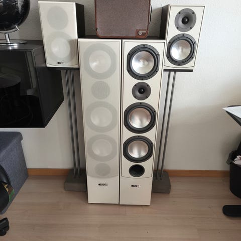 Finns lite repor på center högtalaren och ett litet jack i en golvhögtalare.