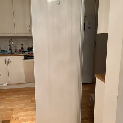 IKEA frysskåp i rostfritt stål. Fristående hög modell med en slät front och vertikalt handtag. Passar för förvaring av frysta livsmedel i kök eller förråd. Exakta energiklass minns jag inte