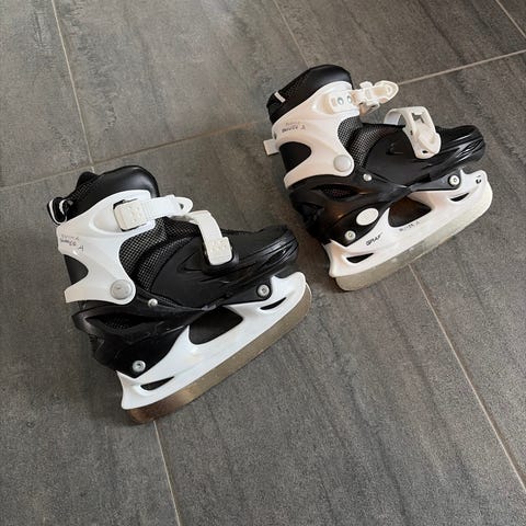 Mini skidskridskor US/35-48 EU- Justerbara remmar framtill och över foten för att passa olika skostorlekar. Undersida med längsgående spår för bättre grepp i snö. Levereras med förvaringspåse och originalkartong. Använda bara två gånger.