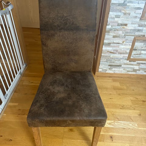 Bordet och stolarna är i bruksskick och någon stol har någon repa , bordet är också i bruksskick