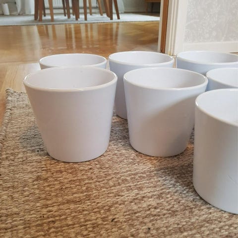 Fyra krukor från Plantagen till salu. Alla köptes i somras, användes försiktigt och är i princip i samma skick son de köptes. Tre av krukorna är av modellen Ida och en av modellen Jada.