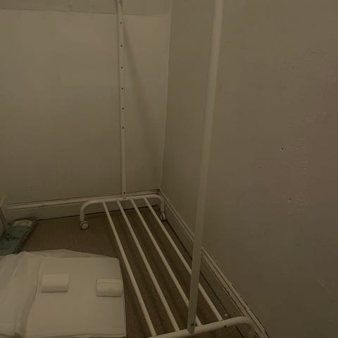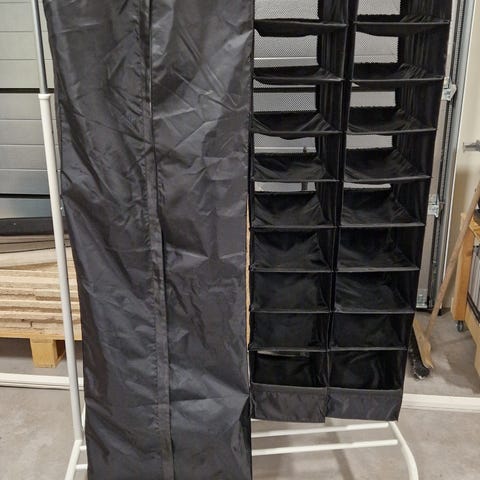 IKEA klädställning i vit metall formgiven av Aage Petersen. Flera horisontella stänger för upphängning av kläder, handdukar eller andra textilier. Fristående konstruktion som kan placeras mot vägg eller i rum som extra förvaringslösning.