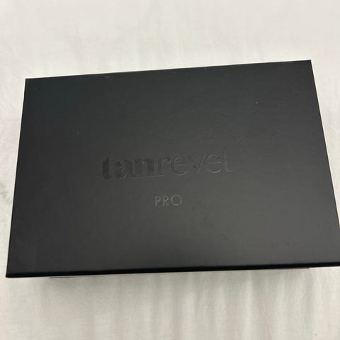 Tanrevel Pro brun utan sol-kit för ansiktet. Setet innehåller en Tanrevel Pro-apparat och en flaska brun utan sol-vätska/refill. Produkten är avsedd för applicering av brun utan sol i ansiktet enligt instruktionerna på förpackningen. Laddning, användning och skötsel framgår av texten på kartongen och flaskan.
