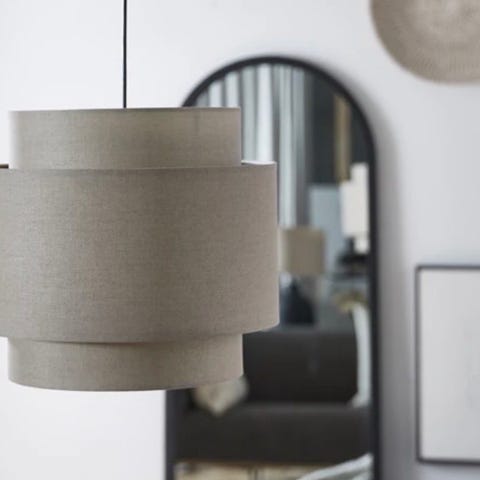 Margin taklampa Ø50 cm från danska New Works är en stilfull lampa som tack vare sina dubbla lampskärmar i canvastyg, sprider ett mjukt och behagligt sken. Lampan finns i flera storlekar att välja mellan och gör sig utmärkt med de andra lamporna i Margin-serien.