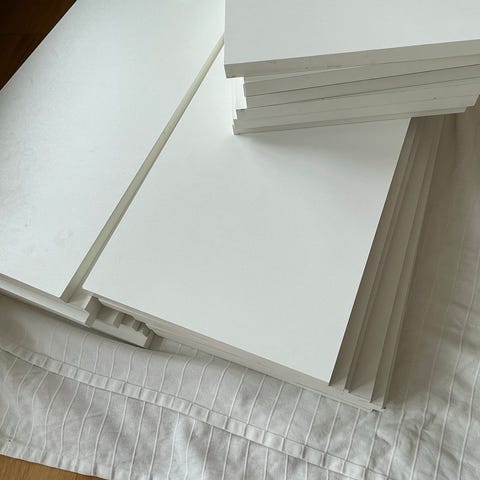 2st dörrar till Beståskåp. Vita matta – lappviken. Några märken och repor på framsidan och skruvhål på baksidan.