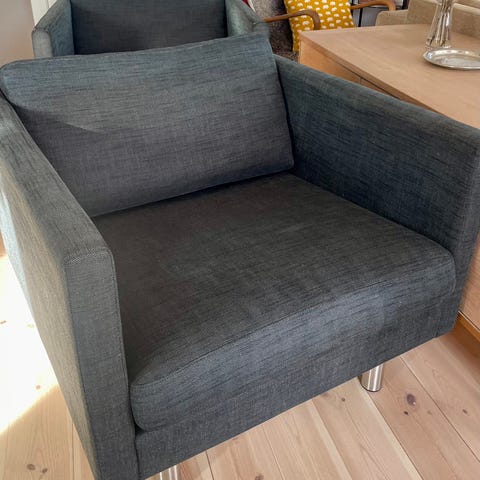 Stolarna är sparsamt använda och är i gott skick, men en har några mindre repor på benen och den ena har en liten fläck. Mycket bekväma. Kudden på ena bilden ingår ej, hehe.