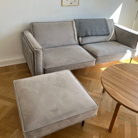 Säljes två X‑Lounge fåtöljer från Venture Home (nypris ca 4 000 kr för paret). Beige/mullvad tyg och svarta ben. Sitthöjden är 40cm och sittdjupet är 54cm.