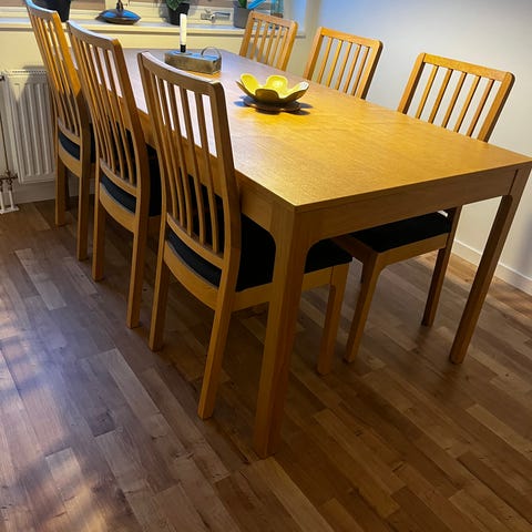 Matbordet är i fint skick, 240 långt med plats för 6-8 personer.