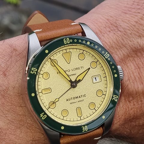 Mycket fin Jacques Monnat Lavezzi Quartz Diver med orange bezel.
