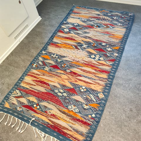 Den här mattan bär på historia, hantverk och hjärta – ett unikt exemplar som ger värme och personlighet till vilket rum som helst.