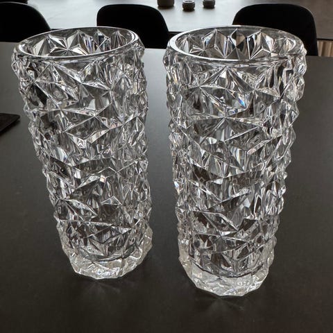 Orrefors Carat ljusstakar i 2-pack. Ljusstakarna är tillverkade i klart glas med fasetterad, kristalliknande fot och pelare samt överdel i guldfärgad metall. Höjd cirka 24,2 cm. Avsedda för kronljus och passar som bordsdekoration eller inredningsdetalj i hemmet.