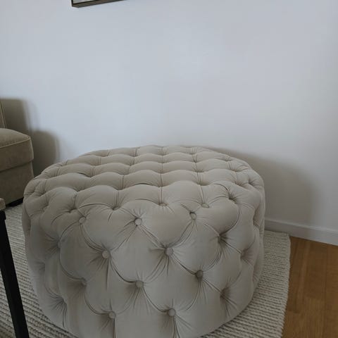 Fin, rund, ljusgrå sittpuff säljes pga flytt.