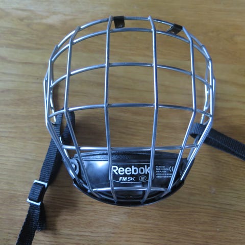 Bauer galler till hjälm i grå metall. Utrustat med hakskydd och justerbar rem för montering på hjälm. Komplett med fastsättningshakar.