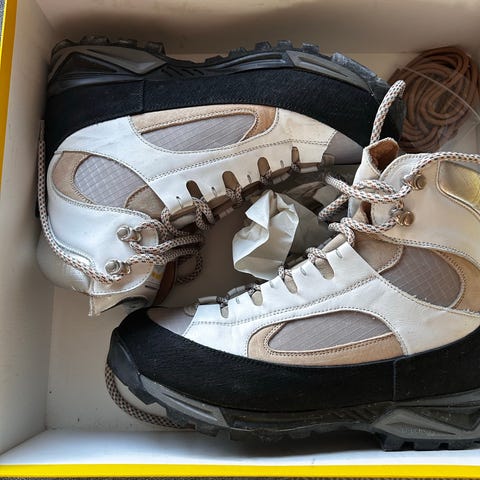 Finns små tecken på användning, mockan och skon kan borstas av lite. Finns extra skosnören. Använda 10 gånger