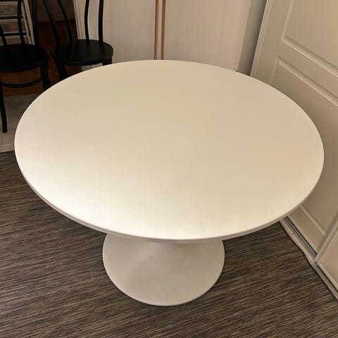 Vanligt runt stort bord som har lite tecken på användning.
