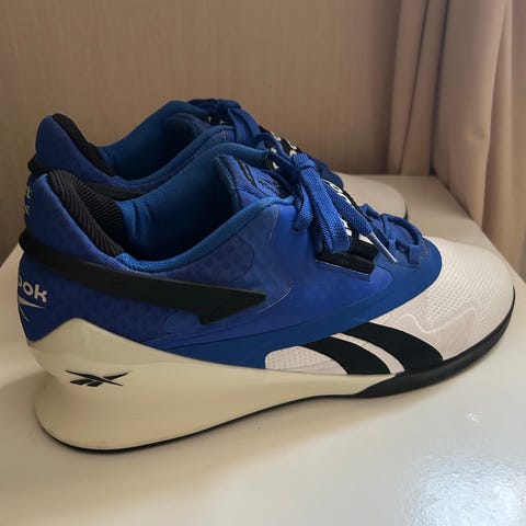 Nike Romaleos 4 träningsskor i storlek 44. Skorna är utformade för träning och lyftning, med stabil sula och förstärkt häl för bra stöd. Ovandelen är i svart och grått med snörning och extra rem över foten för säker passform. Lämpliga för styrketräning och annan inomhusträning där stabilitet är viktig.