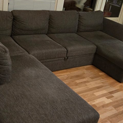 Den har en transportskada under ena sittdelen men inget som påverkar funktionen