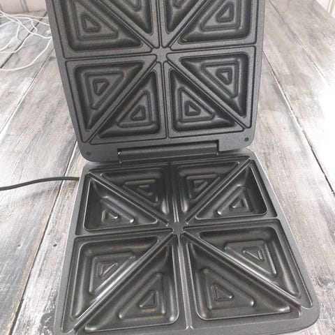Breville smörgåsgrill Force Toastie i vit färg. Grillen har plats för två dubbelmackor och ger trekantsformade smörgåsar. Utrustad med non-stick-beläggning på grillplattorna för enklare rengöring. Passar för varma smörgåsar och toast i hemmet.