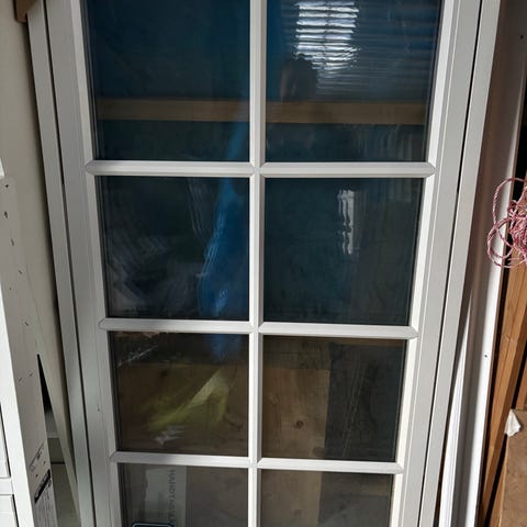 Tvådelat SP-fönster stabil vrid i vit färg med lösa spröjs och frostat glas.