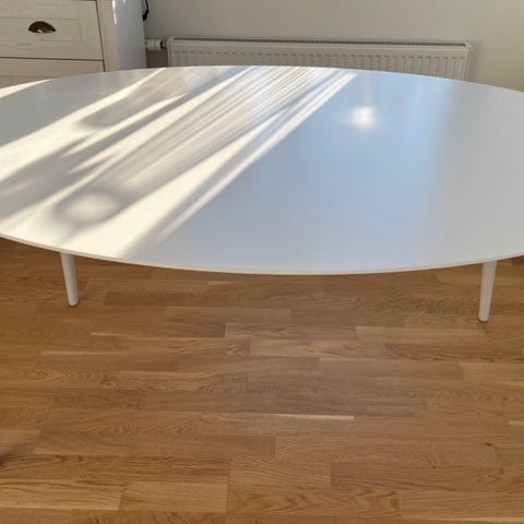 Matbord, ovalt vitt med metallben