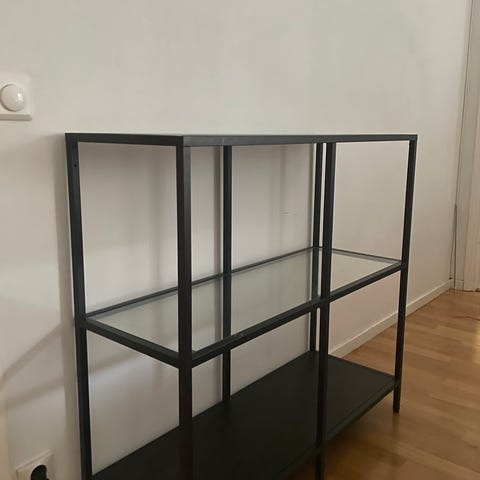 Ikea vittsjö modell hylla (se bild för mått). Svartbruna hyllor med glashylla. Svart metallram.
