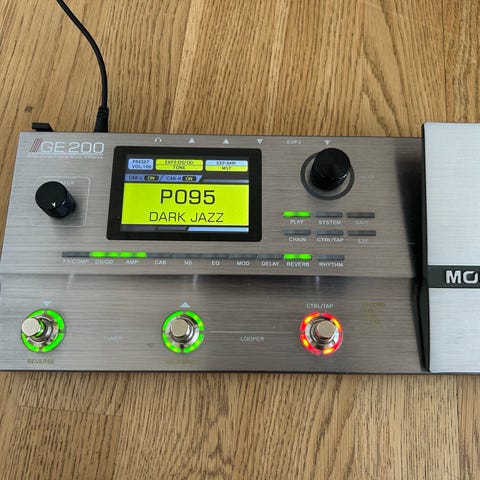 Yamaha Magicstomp gitarrmultieffektpedal. Effektpedal för elgitarr med inbyggda multi-effekter och digital display för inställningar och parametrar. Utrustad med flera reglage och fotomkopplare för att styra och växla mellan olika ljudlägen. Anslutningar för gitarr och utgång till förstärkare eller annan ljudutrustning.