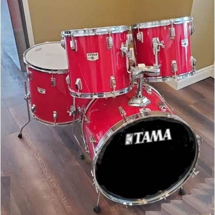 Tama trumset från 80 talet Swing star i silverfärg. Består av tre pukor/toms i olika storlekar 12”14”16”samt bastrumma.22”Kromade beslag och spännen. Passar för övning, replokal Exakta material är inte angivna.