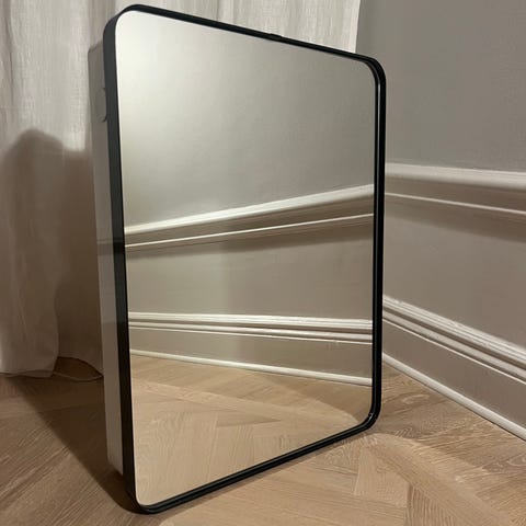 Passar i badrum eller toalett där extra förvaringsutrymme och spegel önskas.