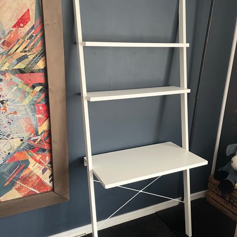 Vitt skrivbord med hyllor från Mio. Går att monteras/fästas i vägg.