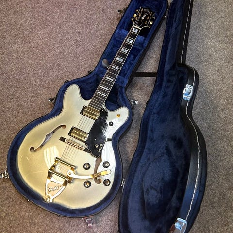 Vacker japansktillverkad Gretsch från Fujigen-fabriken. Tillverkad 2005. Ren med lätt patina. Uppsatt av Thomas Berg i Sandviken, gitarrbyggare för Nicke Andersson och Dregens spegel 335.