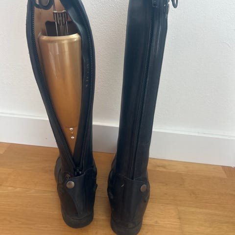 Stövlar från CRW i storlek 41. Dragkedja bak och tryckknappar upptill för att hålla skaftet på plats.
