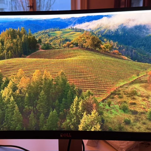 Dell bildskärm med 32 tum skärmstorlek. Skärmen har svart baksida och silverfärgat stativ med rektangulär fot. Passar för anslutning till stationär dator eller laptop för arbete, studier eller allmänt bruk. Fullt fungerande , pixeltest genomfört.