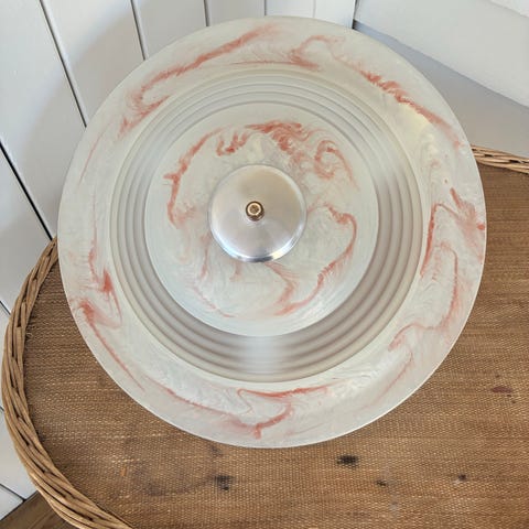 Underbart vacker plafond i jugend/sekelskiftesstil med stomme i mässing och marmorerat glas. Ger ett mjukt och stämningsfullt ljus och passar fint i äldre hus eller lägenhet med klassisk känsla.