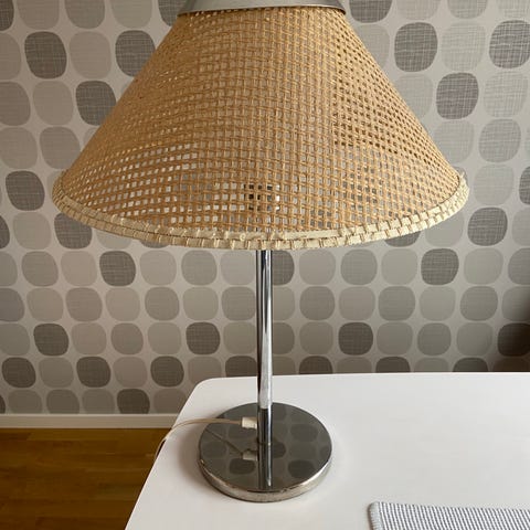 Lampa med skärm i rotting. Lampfot i lite mörkare siler färg