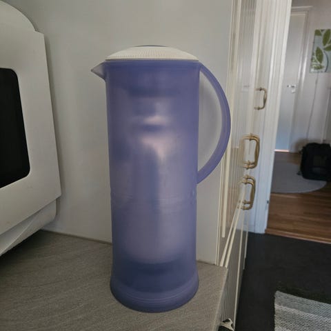 Kellogg’s serveringsset med skålar och glas i vit plast. Setet består av flera olika tallrikar till 6 personer samt genomskinliga glas och kryddburkar. Överdelen är kupolformad med handtag och Kellogg’s-logotyp på sidan. Passar för servering av picknick. Alla delar är stapelbara för enkel förvaring. Vintage