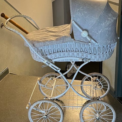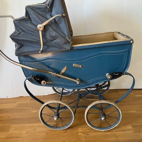 Blå Emmaljunga Gondol år 1982. Liggvagn med Chassi och tillbehör.