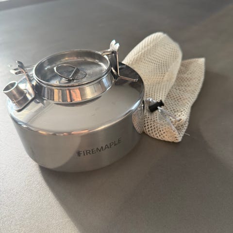 Alessi vattenkokare i rostfritt stål. Klassisk konformad modell med handtag i kontrastfärg och pip med fågelfigur. Funkar ej på induktion.
