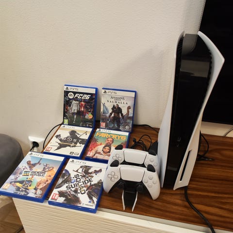 Jag säljer allt för sammanlagt 4500kr. Alla sladdar, spel och handkontroll ingår. Denna är Playstation 5 slim disc edition. Gta 5 finns inne i ps5 konsolen. Kan hämtas eller fraktas.