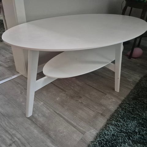 Runt soffbord köpt på mio säljes pga flytt. Finns en repa i glaset som syns till höger om den grå ljusstaken på bilden.