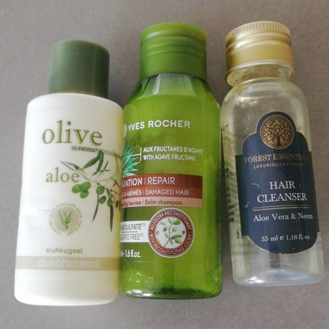 Ungefär 50 procent av schampot kvar i flaskan.