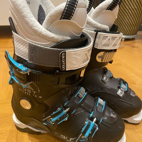 Pjäxorna har flera justerbara spännen och högt skaft för bra stöd.