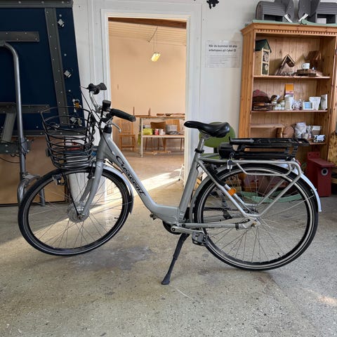 Cykeln är i fint skick och fungerar som den ska. Med två batterier slipper du räckviddsångest och kan enkelt ta dig längre sträckor utan problem. Perfekt för dig som vill ha ett smidigt och miljövänligt transportmedel.