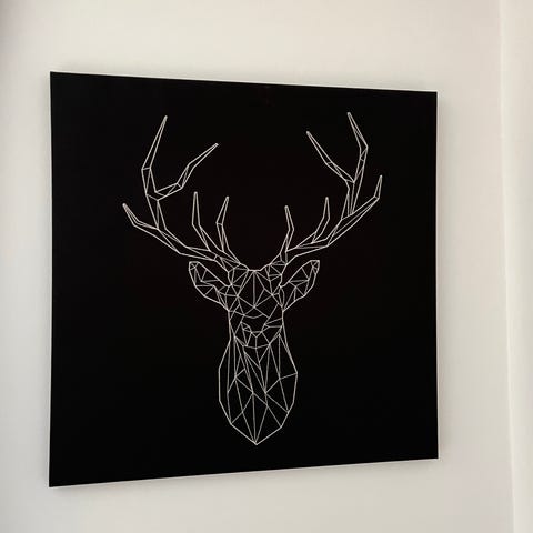 Säljer en populär tavla från IKEA:s PJÄTTERYD-serie. Motivet är en vacker, geometrisk fågel broderad med guldfärgad tråd på en svart canvas. Ger ett modernt och lyxigt intryck på väggen.