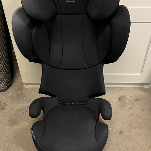 Maxi-Cosi bilbarnstol för barn upp till cirka 36 kg. Bilbarnstolen är framåtvänd och har justerbart rygg- och nackstöd. Den är utrustad med isofix-fästen för montering i bilen. Klädseln är i mörk, neutral färg. Passar som bilbarnstol/bältesstol för större barn inom angiven viktklass.