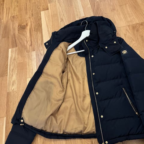 Morris Lady dunjacka vinterjacka för dam i storlek M. Varm och gosig dunfyllning (80 % fjäder, 20 % dun) och yttertyg i polyester. Löstagbarhuva med knappar.