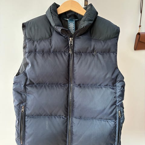 Svart, vadderad väst. Två sidofickor med dragkedja och två innerfickor med kardborrestängning. Lätt och smidig.