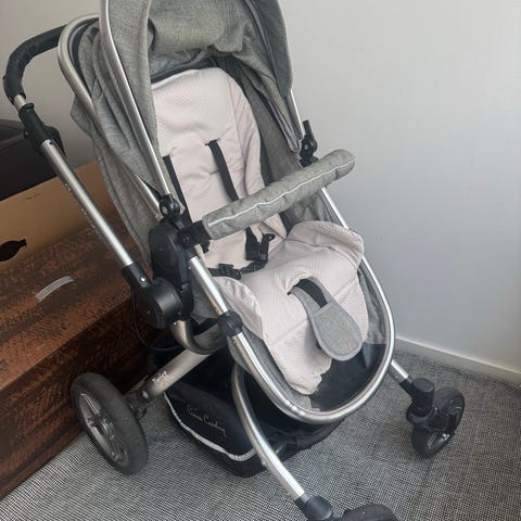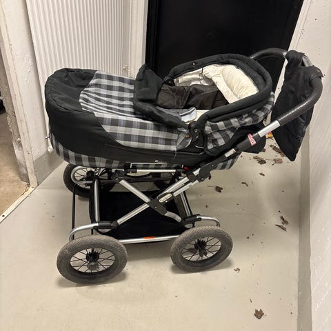 Emmaljunga barnvagn med liggdel och två sittdelar. Har justerbart handtag. Hämtas i Södertälje.