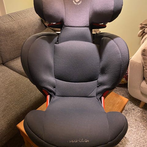 Vårt barnbarn Sebbe har vuxit ur bilbarnstolen så nu kan någon annan ta över den.