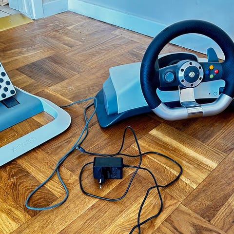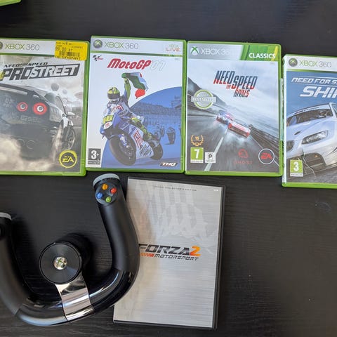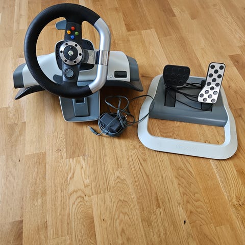 Xbox 360 med ratt, pedaler och bilspel