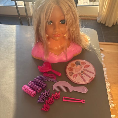 Det här smink- och frisörhuvudet är perfekt till alla små barn som älskar make-up och hår. Det medföljer massor med olika tillbehör till både håret och dockans ansikte. Sminka och gör coola frisyrer.